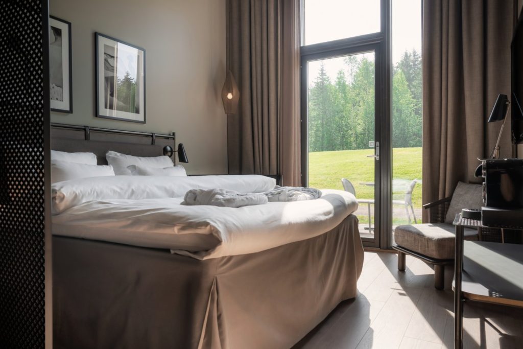 Våre store Deluxerom har utsikt over atriumhaven, hagen eller mot parkering. Du kan velge mellom king bed (180 cm) eller twin beds (2*90 cm).