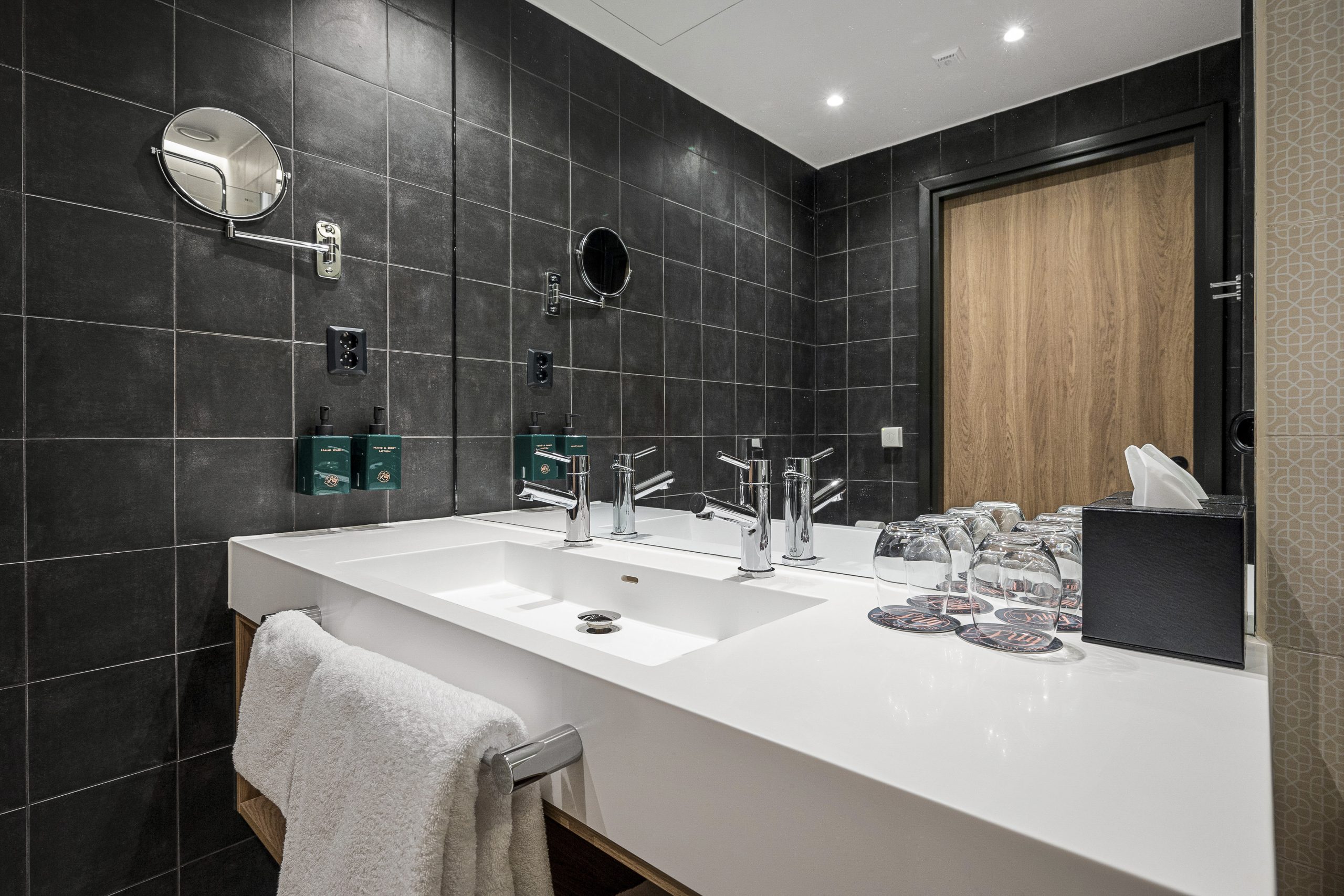 Our Family Rooms overlook the parking lot. The room is equipped with a double bed (180 cm) and a wall bed (160 cm) – perfect for families.