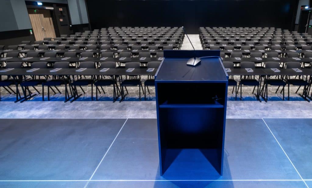 Dette er 2/3 del av vår hovedsal. Fantastisk takhøyde på 8 meter og en topp moderne sal. Max kapasitet på 504 i kino og 320 til middag. I denne salen har vi også kjøreport. Kan kombineres med The Yard 1.