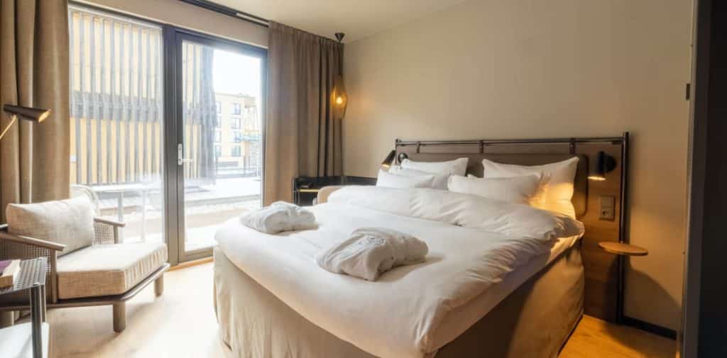 Våre store Deluxerom har utsikt over atriumhaven, hagen eller mot parkering. Du kan velge mellom king bed (180 cm) eller twin beds (2*90 cm).